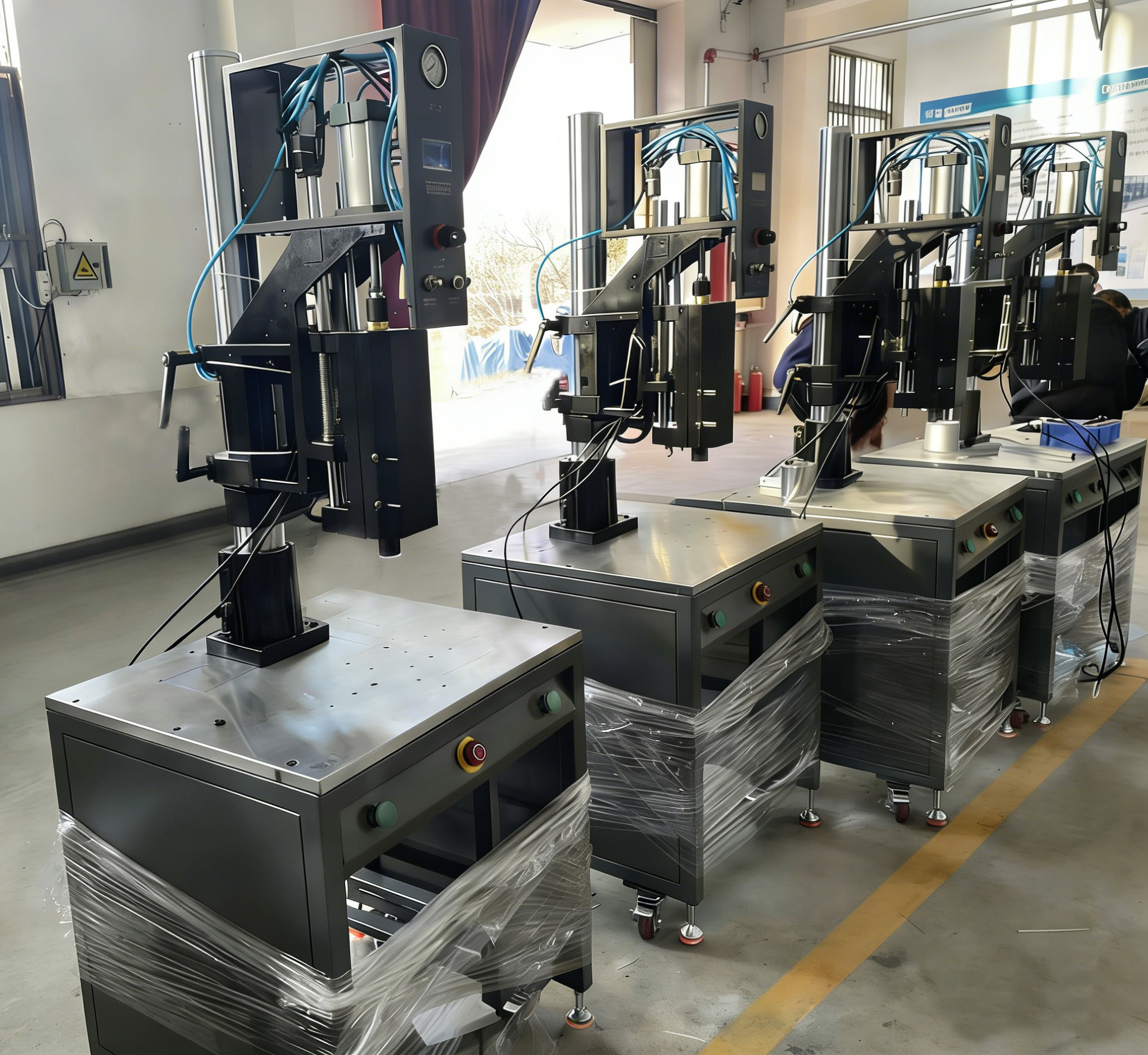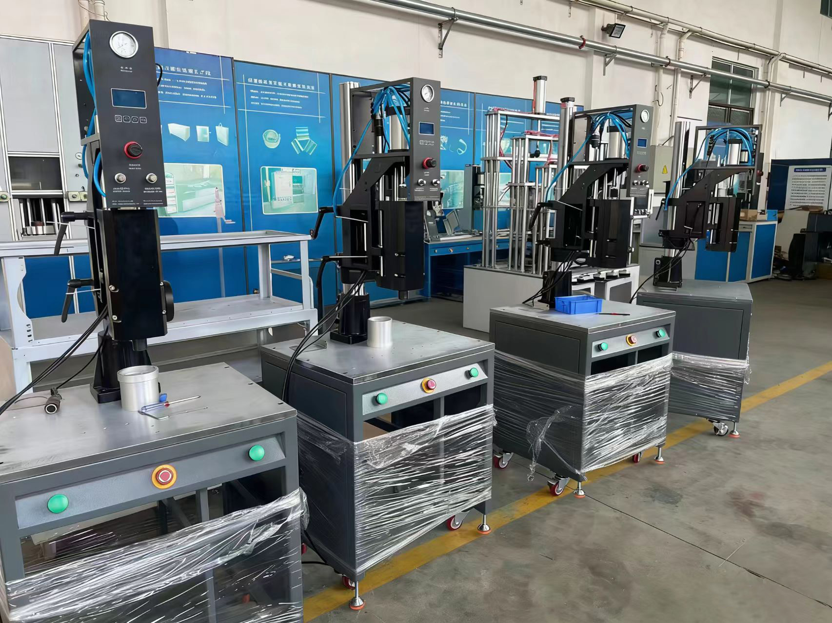 近日,公司 9 台导爆管自动封尾贴标机完成检测与装柜,正式发往印度。设备专为民爆工业量身打造,集成超声波封尾与贴标一体化工艺,相较胶粘、电烫合等传统工艺,具有生产效率高、焊接质量稳、环保节能的显著优势。此次批量出口彰显公司核心技术实力,为深耕南亚民爆市场、深化国际合作奠定坚实基础。